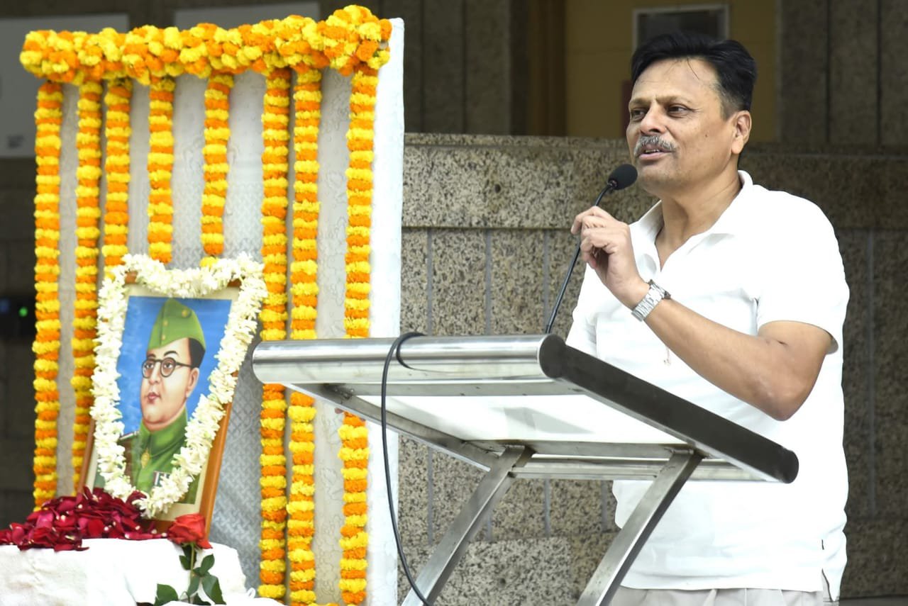 श्री अच्युत घाटक ने भारत के स्वतंत्रता संग्राम में नेताजी के अतुलनीय योगदान पर प्रकाश डाला, जबकि श्री ब्रजेश कुमार त्रिपाठी ने उनके निर्भीक नेतृत्व और अदम्य साहस पर अपने विचार व्यक्त किए।